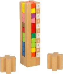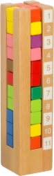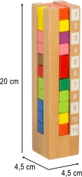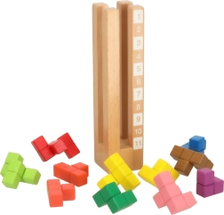 Kocke su izrađene od izdržljivog drva i imaju glatke rubove i žive boje, što osigurava sigurnu igru. Ova igračka je savršen izbor za povezivanje učenja sa zabavom, podržavajući razvoj djeteta putem angažiranih zadataka.