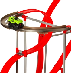 Zeleni autić uključen u set posebno je dizajniran za savladavanje ekstremnih staza. Njegov motor pokreću dvije AAA baterije (nisu uključene), što omogućava glatku i laku vožnju po složenim dionicama staze.