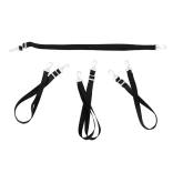 Podesive trake s metalnim kopčama čvrsto drže mete na mjestu. Izdržljiv tekstil podnosi i žešće dvoboje.