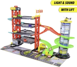 Višenamjenska parkirna garaža idealna je igračka za svakog malog automobilskog entuzijasta. Četiri kata daju djeci mnoštvo prostora za kreativnu i interaktivnu igru. Zahvaljujući zvučnim i svjetlosnim efektima svaka igra postaje uzbudljivo iskustvo.