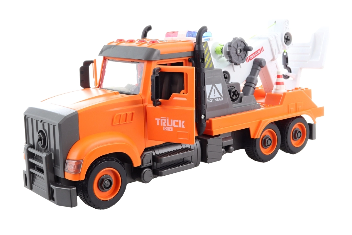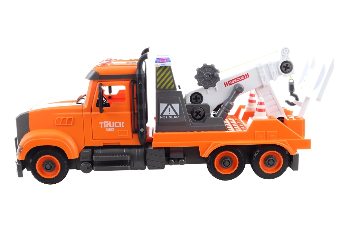Prekrasno veliko vučno vozilo na vijak. Napajanje s 3 AG13 baterije koje su uključene u pakiranje. Na krovu automobila nalaze se 4 tipke s funkcijama – pokretanje, truba, signal pri vožnji unatrag i melodije. Auto je na zamašnjak. Materijal: plastika. Odvijač je uključen u pakiranje. Pakirano u otvorenoj kutiji. Dimenzije pakiranja cca 41×22×13 cm. Dimenzije automobila 36×15×11 cm. Dob 3+.