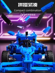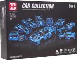 Ovaj univerzalni set 9u1 u plavoj boji nudi sate stvaralačke zabave. Sastavite različite modele trkaćih auta, bolid, kamion ili pick-up i ukrasite ih priloženim naljepnicama. Vozila napaja akumulator 3,7 V (uključen), a punjenje omogućuje USB kabel.