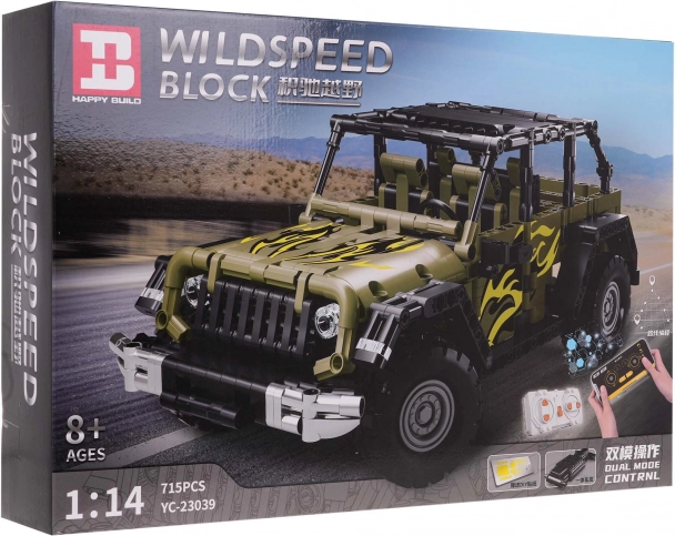 Konstrukcijski set terenskog RC auta WILDSPEED: 715 dijelova, mjerilo 1:14, upravljanje 2,4 GHz i mobilna aplikacija, otvarajuća vrata, baterija 3,7 V. Od 8 godina.