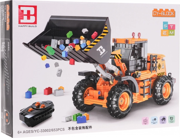 Tehnička konstrukcijska set-stavebnica buldožera s 653 dijelova i RC upravljanjem 2,4 GHz. Pokretna ruka, otvarajući poklopci, akumulator 3,7 V. Za djecu od 6 godina.