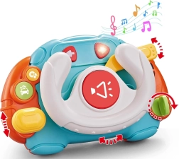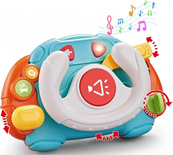Ovaj šareni volan odličan je za djecu koja vole oponašati vožnju. Realistične funkcije poput okretanja volana, preklapanja žmigavaca i pokretanja ključem upotpunjuju svjetlosni efekti te zvukovi motora, trube i glazbe. Igračka je lagana, kompaktna i lako stane u kolica ili putnu torbu.