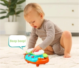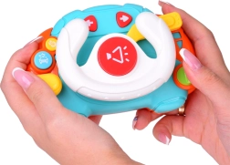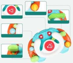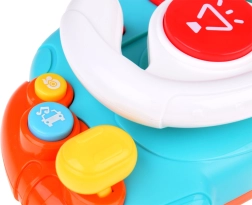 Volan potiče razvoj fine motorike, slušnu percepciju i koordinaciju oko–ruka. Zahvaljujući više režima reproducira trubu, 3 melodije i 4 glazbene i zvučne zapise, pri čemu se središnje dugme osvjetljava u ritmu.