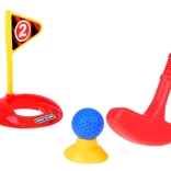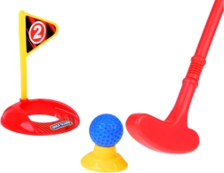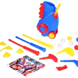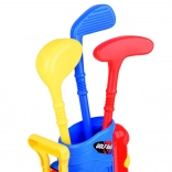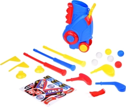 Set sadrži 3 šarene palice s različitim glavama za lakše udarce, 6 loptica, 2 postolja (tee), 2 rupe sa zastavicama i stalak/torbu. Djeca uvježbavaju ciljanje, procjenu snage i koncentraciju, dok uživaju u aktivnoj zabavi u interijeru i eksterijeru.