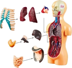 Ovaj detaljno izrađen anatomski model trupa omogućuje jasno upoznavanje rasporeda ljudskih organa. Zahvaljujući izvadivim dijelovima (pluća, srce, jetra, želudac, gušterača, tanko i debelo crijevo, rebra) lako ćete usvojiti njihov položaj i međusobne odnose.
