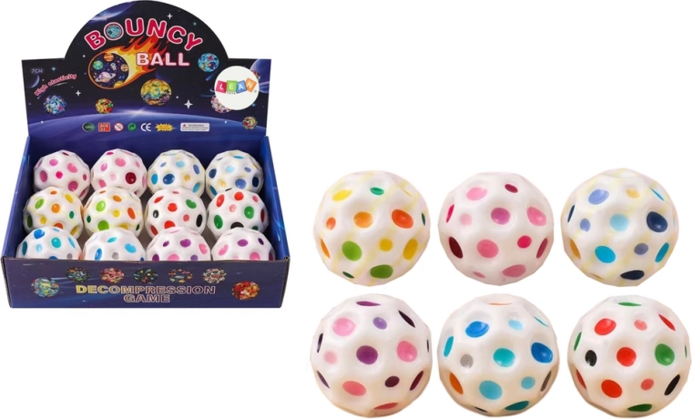 Zabavna kozmička loptica u bijeloj boji s šarenim udubinama donosi brze odskoke, mogućnost stiskanja za senzorno umirenje i sjajnu zabavu za djecu i odrasle. Zahvaljujući promjeru od 7 cm idealna je za igru kod kuće i na otvorenom te potiče finu motoriku i koordinaciju.