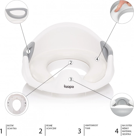 Za dijete je prijelaz na klasičnu školjku važan korak. WC sjedalo ZOPA Coach olakšava taj proces zahvaljujući ergonomskom dizajnu i univerzalnosti. Sjedalo se lako postavlja na većinu tipova WC školjki bez potrebe za posebnim alatom, a zahvaljujući protukliznim točkama na donjem dijelu osigurava stabilnost.