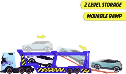 Realistični autotransporter VOLVO FH16 razveselit će sve male vozače. Nudi svjetlosne i zvučne efekte, slobodan hod za glatku vožnju i prikolicu za prijevoz automobila. Dio pakiranja su 3 automobila VOLVO XC40 RECHARGE. Duljina seta je 40 cm.