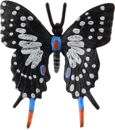 Ovaj kvalitetan model leptira prikazuje tipične značajke roda Papilio – elegantna crna krila s bijelim pjegama te suptilnim plavim i crvenim akcentima. Zahvaljujući realističnojj izradi odličan je dodatak za ljubitelje prirode, škole i muzeje.