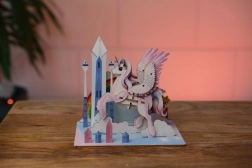 Model jednoroga ističe se živim bojama i dekorativnim izgledom – savršen za izlaganje nakon sastavljanja.