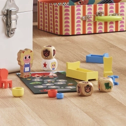 Igra je preporučena za djecu od 3 godine i sadrži različite igraće elemente koji osiguravaju zabavu za male i velike. Dijelovi igre uključuju: 1 kartonska igraća ploča, 1 drvena Zlatokosa, 2 drvene kockice, 3 drvena kreveta, 3 stolca, 3 zdjelice i 1 pamučna vrećica.