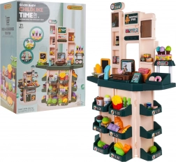 Dječji supermarket opremljen je blagajnom i skenerom koji stvaraju realistične zvukove i svjetlosne efekte, čime povećavaju ukupni doživljaj igre.