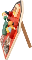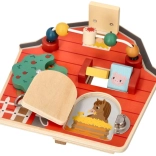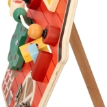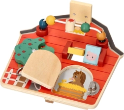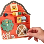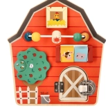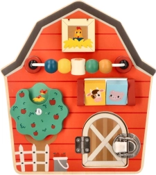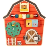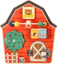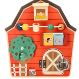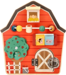 Ova drvena aktivna ploča u obliku staje osmišljena je kako bi poticala finu motoriku i zabavu kod djece. S raznolikom tematikom farme i živim bojama ne samo da educira, već i zabavlja najmlađe članove obitelji. Interaktivni elementi poput pomičnih perlica, rotirajućeg stabla i vratanca s zasunom pomažu u razvoju koordinacije oko-ruka.
