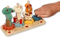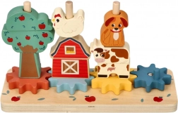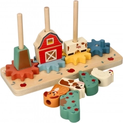 Slagalica 'Luda farma' dizajnirana je kako bi obogatila dječju maštu kroz drvene elemente oslikane živim bojama. Zahvaljujući sastavnim elementima u obliku farme, stabala i životinja, djeca uče kako strateški postavljati dijelove i pretvarati izazove u igru. Igračka je opremljena zupčanicima koji djeci omogućuju otkrivanje principa mehanike.