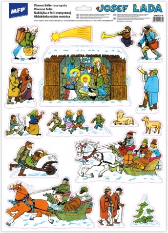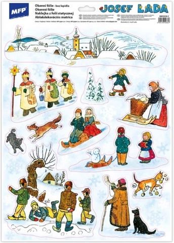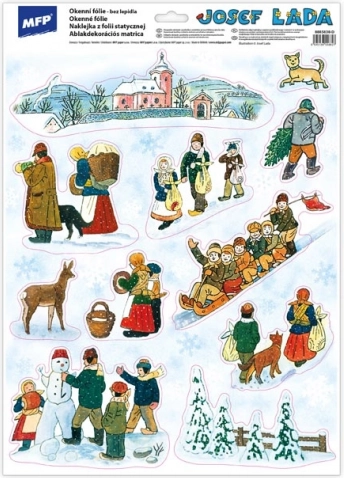 Božićne prozorske folije s ljupkim zimskim motivima JOSEF LADA pretvorit će vaš prozor, izlog ili ogledalo u slikovitu zimsku scenu. Zahvaljujući elektrostatičkom prianjanju, naljepnice se apliciraju bez nereda, bez ljepila, te se mogu u svakom trenutku lako skinuti i ponovno postaviti.