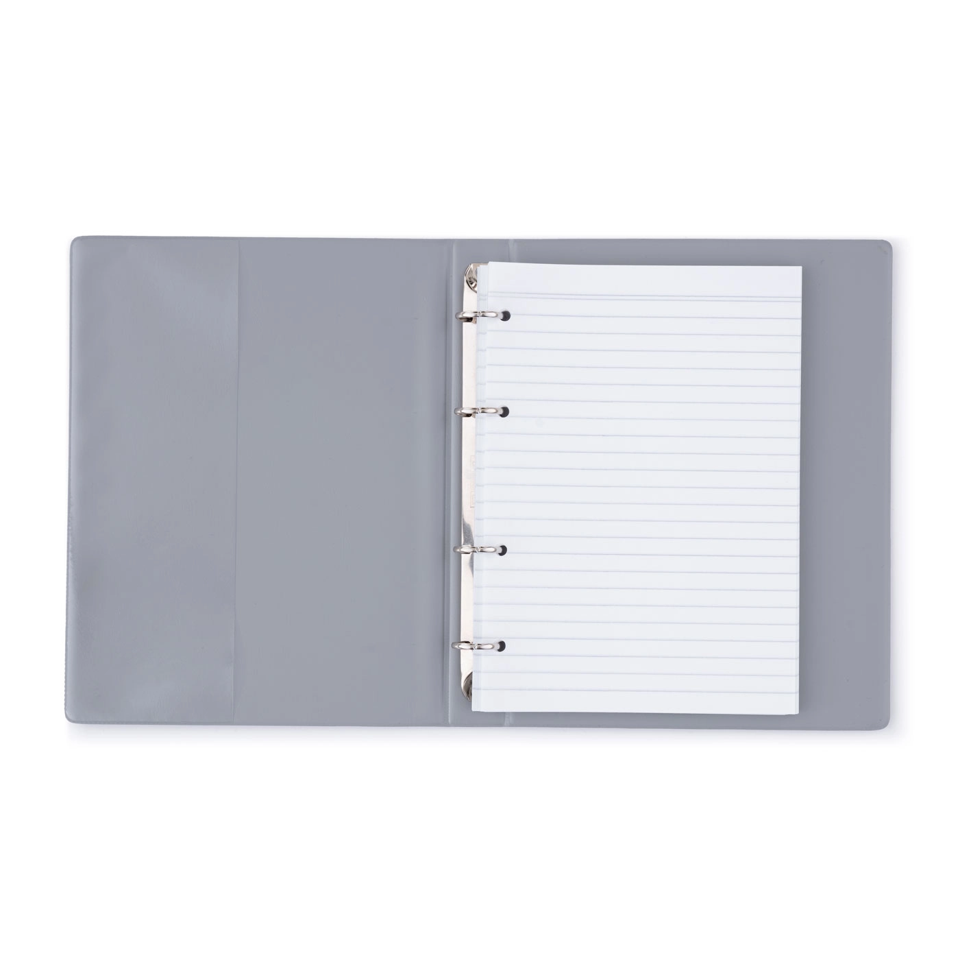 Praktična i izdržljiva bilježnica A4 Pastelini u sivom izdanju savršen je izbor za svakodnevno pisanje i planiranje. Čvrste PVC korice štite vaše bilješke, dok mehanizam s 4 prstena omogućuje lako dodavanje i premještanje listova.