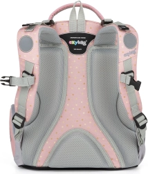 Lagana i prostrana školska torba OXY GO Leptir za 1.–3. razred ističe se stilskim dizajnom, ergonomski oblikovanom i prozračnom leđnom stranom, podesivim naramenicama i reflektirajućim elementima za sigurnost. Nudi kapacitet od 22 l, čvrsto nepromočivo dno i mnogo džepova za savršenu organizaciju školskog pribora.