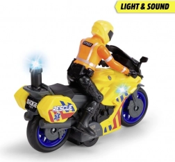Uživajte u akcijskim spasilačkim misijama s ovim spasilačkim motociklom dužine 17 cm, opremljenim svjetlom, zvukom i pokretnom figuricom vozača.