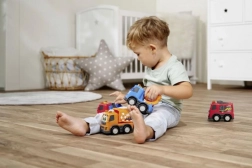 Naše vozilo izrađeno je od izdržljive plastike i dugačko je 13 cm, što ga čini lako upravljivim za male ruke. Svaka vrsta vozila nudi različite funkcije koje potiču dječju maštu i podupiru njihov razvoj. Možete birati između: