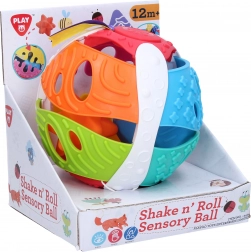 Zabavna umetajuća kugla Playgo promjera 15 cm donosi djeci od 12 mjeseci puno osjetilne zabave. U kompletu su 2 mekane loptice, koje se ubacuju u kuglu, te vrpca s okretnim kotačićem koji pri okretanju proizvodi zvuk klikanja.