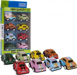 Ovaj šaroliki set od 8 mini autića donosi spoj izdržljivosti, dizajna i jednostavnog rukovanja. Metalna karoserija s modernim motivima i gumene gume osiguravaju dug vijek trajanja i izvrsnu prianjivost na glatkim površinama. Povratni pogon omogućuje da autići nakon kratkog povlačenja sami živahno krenu naprijed.