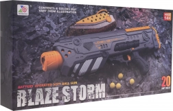 Zabavna i sigurna akcijska igra za stariju djecu: poluautomatski pištolj BLAZE STORM za pjenaste kuglice s gornjim spremnikom. Nudi brzu paljbu, kvalitetnu plastičnu izradu i 20 mekanih kuglica u pakiranju. Namijenjeno dobi 14+, napajanje 6× AA (nije uključeno).
