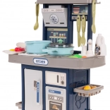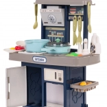 Stilska dječja kuhinjica u plavoj boji donosi svjetlosne i zvučne efekte, tekuću vodu iz slavine te bogat set od 35 dodataka za realistično kuhanje. Čvrsta konstrukcija, interaktivna ploča za kuhanje s pozadinskim osvjetljenjem i zvukovima prženja ili kuhanja, te pećnica i hladnjak na otvaranje potiču kreativnu igru i razvoj mašte djece od 3 godine.