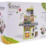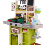 . . | Bogato opremljena, velika multifunkcionalna kuhinja za djecu stariju od 3 godine. Kuhinjska igra ima sudoper s slavinom iz koje teče voda, osvijetljene plamenike sa zvukovima kuhanja i prženja, jedan od plamenika ima funkciju pare, pomične gumbe, pećnicu koja se otvara, hladnjak koji se otvara, sat s pomičnim kazaljkama, police i brojne kuhinjske dodatke (63 komada). Set se napaja s 3 AA 1,5 V baterije (nisu uključene). .. Funkcije kuhinje: . - prikladno za djecu od 3 godine, .- izrađeno od najkvalitetnije plastike, .- reproducira zvukove prženja i kuhanja, .- osvijetljeni plamenici, .- pomični gumbi, .- para iz plamenika, .- voda iz slavine, .- hladnjak s vratima koja se otvaraju, .- pećnica s vratima koja se otvaraju, .- 2 x ormarić koji se otvara, .- sat s pomičnim kazaljkama, .- odvojiva ploča za pisanje kredom. |