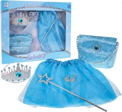 Set za malu princeznu nudi bogat izbor dodataka s kojima svako dijete može postati ono što poželi. Kvalitetna izrada s naglaskom na detalje u lijepoj plavoj boji donosi radost i potiče maštu vašeg malog blaga.
