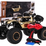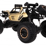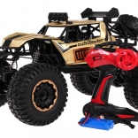 Zlatni off-road RC model 1:8 idealan je izbor za djecu od 3 godine naviše, koja će uživati u svakodnevnim avanturama. Zahvaljujući metalnoj karoseriji i antikolisijskoj konstrukciji model je dovoljno izdržljiv da podnese zahtjevnije terenske uvjete. Uživajte u vožnji s visokim ovjesom i velikim gumenim gumama. LED osvjetljenje omogućuje vožnju i pri slaboj vidljivosti.