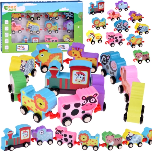 Tražite igračku koja spaja učenje i zabavu? Ovaj drveni vlak s životinjicama idealno je rješenje za djecu već od 12 mjeseci starosti. Sastoji se od lokomotive i deset vagona, svaki ukrašen različitom životinjicom i opremljen s naglašenim bojama.