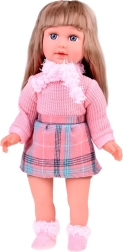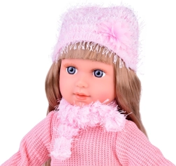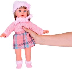 Predstavljamo vam prekrasnu lutku Kate, koja uči djecu engleski. Ova stilska lutka je odjevena u ružičasti džemper, mini suknju s kariranim uzorkom, čarape, šal i kapu s ukrasnim elementima. Visina lutke je približno 42 cm.