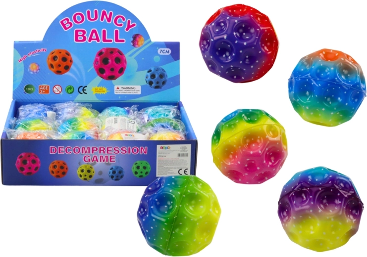 Svjetleća skakajuća loptica s udubinama, šarena, 7 cm