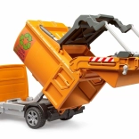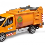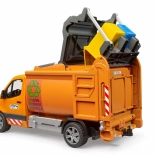 Ovaj gradski kamion za smeće BRUDER vjerno oponaša pravi MERCEDES-BENZ Sprinter. Zahvaljujući kompaktnim dimenzijama „dolazi“ svuda gdje velika vozila za smeće ne mogu proći. Pri pražnjenju kanti automatski se otvara krovna zaklopka, a nakon spuštanja ponovno zatvara. Stražnja preklopna vrata omogućuju lako istresanje tereta.