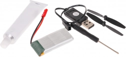 Paket sadrži sve potrebno za sastavljanje, uključujući rezervne propelere, USB punjač i bateriju, što osigurava da će avion biti spreman za let u trenu.