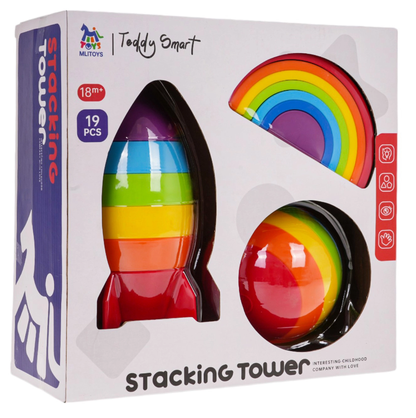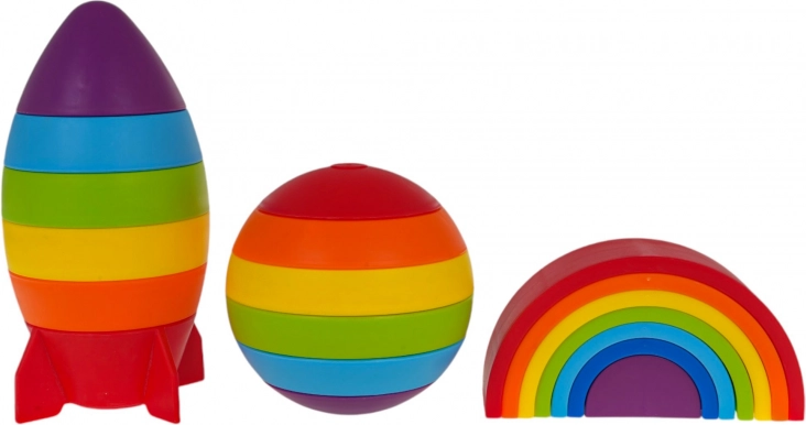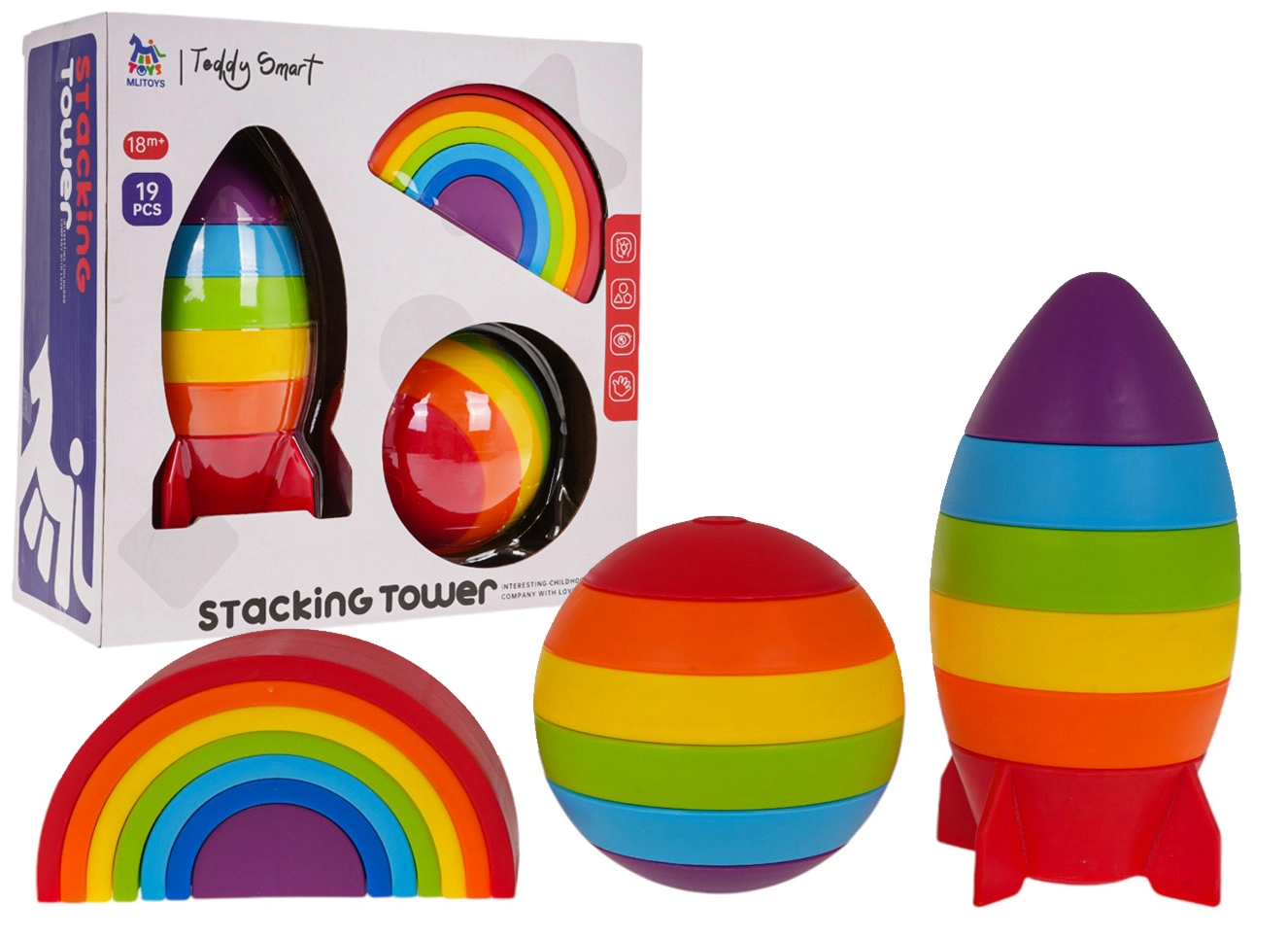 Ovaj svestrani senzorički set donosi djeci raznolik svijet stvaranja: od 19 laganih i izdržljivih dijelova lako se slažu raketa, dugin lukovi i šarena kugla. Igra s bojama, oblicima i sastavljanjem prirodno razvija finu motoriku, logičko razmišljanje i strpljenje, dok izražajne boje potiču prepoznavanje boja i osjetilnu percepciju.