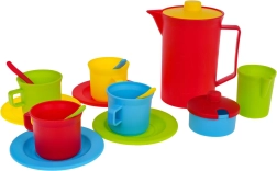Šalice, tanjurići, žličice i čajnik savršeni su za čajanku. Živopisne boje pozivaju na igru i potiču maštu.