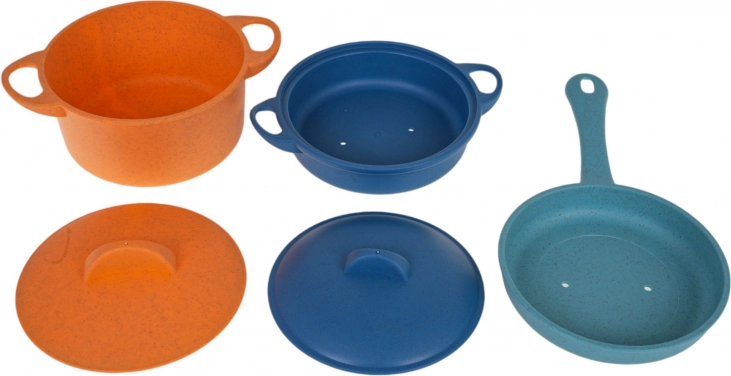 Set je izrađen od bioplastike koja je nježna prema prirodi i djeci. Glatki rubovi i ugodna površina osiguravaju udobnu i sigurnu uporabu, a sve se lako pere.