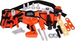 - Podesivi pojas za alat; bušilica; 3 izmjenjiva bita za bušilicu; nastavak za odvijač; 2 izmjenjiva bita za odvijač; kliješta; podesivi ključ; nož; čekić; 2 dijela za odvrtanje; 1 “drveni” dio; 2 vijka; 2 glavice; 4 tiple