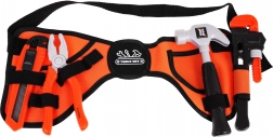 Tekstilni pojas s petljama i džepovima prima kompletnu opremu – djeca imaju čekić, kliješta ili odvijač uvijek pri ruci. Maksimalni opseg približno 84 cm.