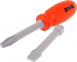Čekić, kliješta, podesivi ključ, nož, odvijač s nastavcima, vijci, tiple i dijelovi za odvrtanje – idealno za trening fine motorike i igru uloga.