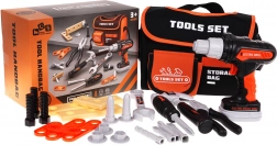Potpuno opremljen dječji set alata s praktičnom torbom i interaktivnom električnom bušilicom za male majstore od 3 godine. U pakiranju se nalazi čak 25 dijelova uključujući izmjenjive bitove, čekić, kliješta i odvijače. Torba s ramenom trakom i ručkom olakšava prenošenje, baterijska bušilica uprivija i odvrće te ima izvlačivu bateriju kao pravi alat.