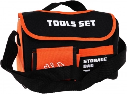 Izdržljiva spremna torba s ručkom i ramenskom trakom. Glavni pretinac na čičak, prednji džep i unutarnje pregrade za pregledno odlaganje alata.