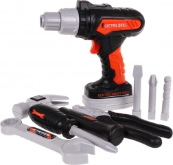 - Torbica, električna bušilica, izmjenjivi bitovi (ravni, križni, svrdlo), nastavak za odvijač, izmjenjivi vrhovi, čekić, kombinirani ključ plosnati–okasti, kliješta, 2 manja i 2 veća elementa za zavrtanje, 3 pločice, 3 vijka, 3 nastavka, 2 tiple