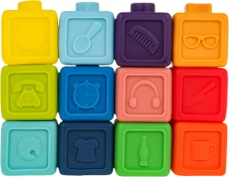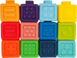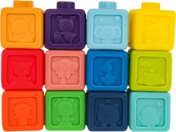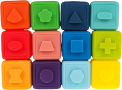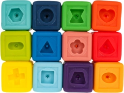 Ovaj svestrani set gumenih kocaka idealan je od prvih dana života. Zahvaljujući mekom, netoksičnom materijalu, kocke su sigurne za grickanje i stiskanje te istodobno potiču senzorno opažanje. Djeca se prirodno uče razlikovati boje i oblike, vježbaju hvat i poboljšavaju koordinaciju ruka–oko.