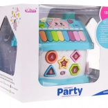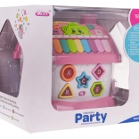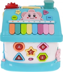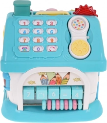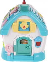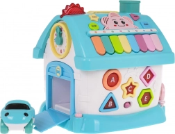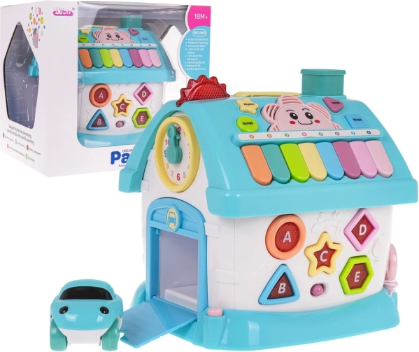 Interaktivna kućica izrađena je od kvalitetne plastike u atraktivnim bojama i osmišljena je kako bi djeca na zabavan način razvijala prepoznavanje oblika, slova i brojeva. Svaka od četiri strane nudi različite aktivnosti – od sata sa zbilja pomičnim kazaljkama i garažnih vrata, preko stranice s abecedom i podsvijetljenim oblicima, pa do ulaznih vrata na ključ sa svjetlom i zvukovima. Dio seta je i mali autić za još više igraćih scenarija.