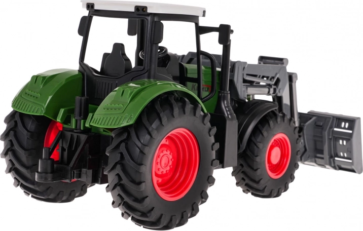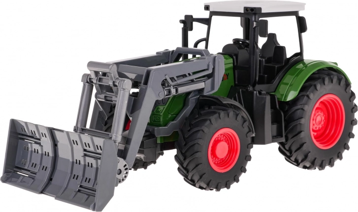 Zabavna i realistična igračka za male farmere: zeleni traktor s prednjim utovarivačem u mjerilu 1:24. Nudi pokretni utovarivač (gore/dolje, lijevo/desno), gumene gume za izvrsno prianjanje i kotače slobodnog hoda za glatku vožnju. Prikladno za djecu od 3 godine, izrađeno od kvalitetne plastike u živim bojama.